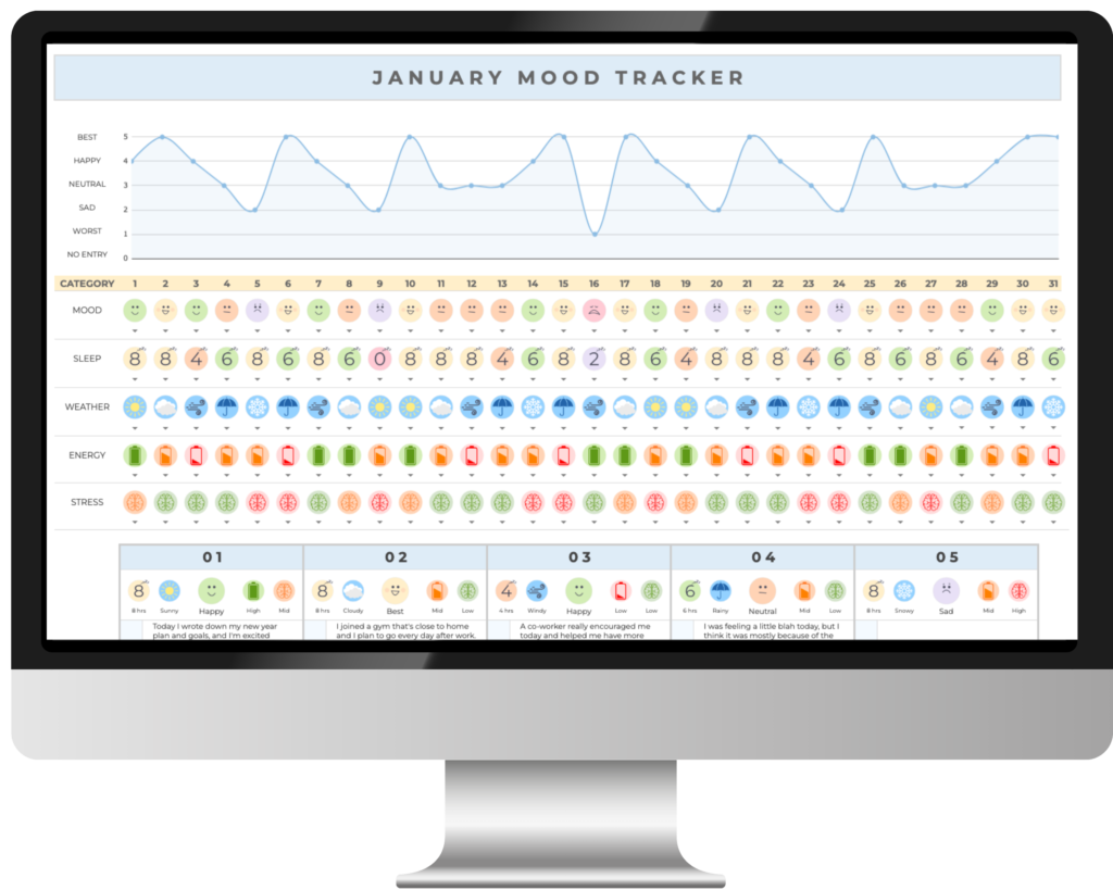 This video tutorial will walk you through the Mood Tracker but also applies to the following templates: